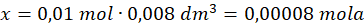 Ilość moli OH- jest równa ilości moli H+. Roztwór ma objętość 1 dm3 więc jest to też stężenie jonów.