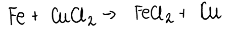 · W reakcji metalicznego żelaza z roztworem chlorku miedzi (II) powstaje chlorek żelaza (II), co wynika z większej różnicy wartości potencjałów standardowych pary utleniacz-reduktor à metal o niższym potencjale może wyprzeć metal o wyższym potencjale z roztworu jego soli: