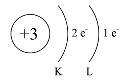 Lit ma liczbę atomową równą 3 – jest to liczba protonów w jądrze (wpisz ją w okręgu symbolizującym jądro atomowe). Znajduje się w drugim okresie, ma zatem dwie powłoki elektronowe (podpisane literami K i L). Lit jest pierwiastkiem grupy pierwszej, ma zatem jeden elektron walencyjny (w grupach 1 – 2 liczba elektronów walencyjnych jest równa numerowi grupy; elektrony walencyjne to elektrony z ostatniej powłoki). Liczbę elektronów na powłoce K możesz obliczyć korzystając ze wzoru: