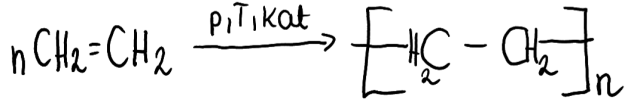 Polimeryzacja polega na łączeniu się ze sobą wielu cząsteczek związku nienasyconego w wyniku rozerwania wiązania p bądź jednego z wiązań p w wiązaniu wielokrotnym. Produktem takich reakcji jest wielocząsteczkowy związek chemiczny. Reakcja ta do zajścia wymaga podwyższonej temperatury, ciśnienia oraz obecności katalizatora.