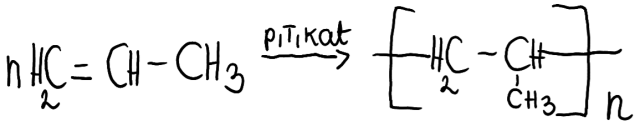 Polimeryzacja polega na łączeniu się ze sobą wielu cząsteczek związku nienasyconego w wyniku rozerwania wiązania p bądź jednego z wiązań p w wiązaniu wielokrotnym. Produktem takich reakcji jest wielocząsteczkowy związek chemiczny. Reakcja ta do zajścia wymaga podwyższonej temperatury, ciśnienia oraz obecności katalizatora.