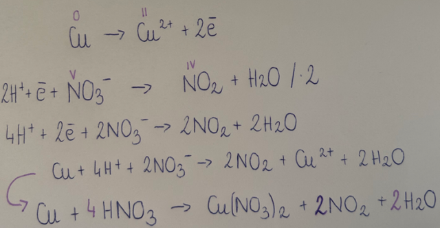 Cu + 4HNO3(stęż) à Cu(NO3)2 + 2NO2 + 2H2O