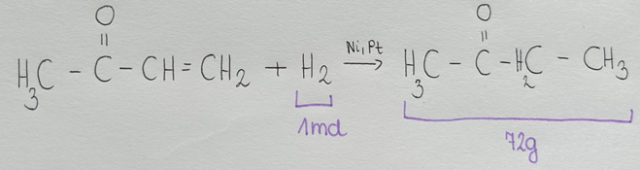 22,4dm3 wodoru à 72g butanonu