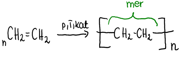 Napisz równanie reakcji polimeryzacji substancji A, podając jednocześnie nazwę powstałego polimeru. Wskaż w równaniu, co jest merem.