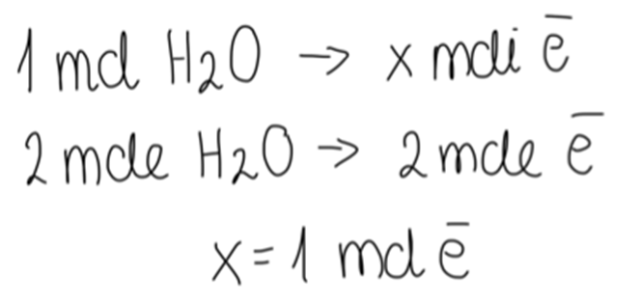 Ustal liczbę moli elektronów, jaka ulega wymianie podczas tworzenia jednego mola wody.