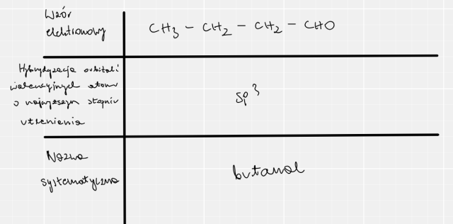 W tym zadaniu musisz uzupełnić tabelę. Narysuj wzór elektronowy tego związku chemicznego, określ typ hybrydyzacji orbitali walencyjnych atomu o najwyższym stopniu utlenienia oraz podaj nazwy systematyczne tego związku.