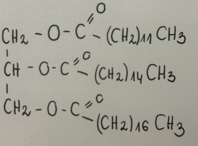 Narysuj wzór produktu, który powstaje wskutek uwodornienia całkowitego przedstawionego tłuszczu.