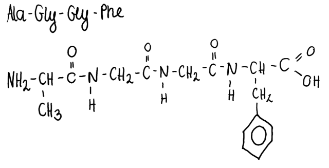Narysuj wzór półstrukturalny tetrapeptydu Ala-Gly-Gly-Phe i zastanów się, czy peptyd o odwrotnej kolejności aminokwasów Phe-Gly-Gly-Ala to ten sam związek chemiczny.