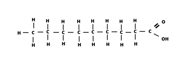 Wzór półstrukturalny: CH3-CH2-CH2-CH2-CH2-CH2-CH2-CH2-COOH