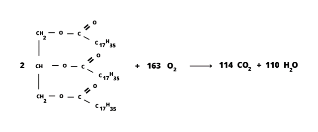 Równanie reakcji spalania całkowitego tristearynianu glicerolu: