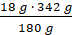 Z równania reakcji wynika, że z 342 g sacharozy powstaje 180 g glukozy. Obliczamy, z ilu gramów sacharozy powstaje 18 g glukozy: