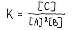 Jeśli przy jakimkolwiek z reagentów występuje współczynnik stechiometryczny różny od 1, to do takiej potęgi należy podnieść jego stężenie.