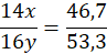 Zapisujemy równanie proporcji, aby obliczyć stosunek x do y – czyli stosunek masowy azotu do tlenu w podanym związku:
