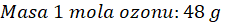 Na podstawie podanej gęstości oblicz ilość atomów w cząsteczce ozonu.