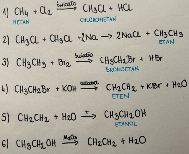 Napisz i uzgodnij równania reakcji chemicznych oznaczonych na schemacie cyframi 1-6.