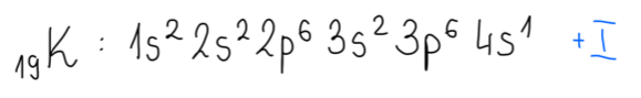 W opisanym przypadku potas musiałby przyjąć 7 elektronów bądź oddać 1, co w tej sytuacji jest prostsze, zatem jego stopień utlenienia to +I.