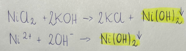 Napisz równania reakcji w formie cząsteczkowej i jonowej skrócone, które pokazują, w jaki sposób można doświadczalnie otrzymać wodorotlenek niklu w reakcji strącania.