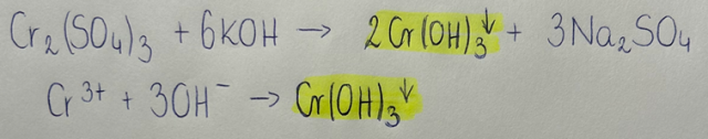 Napisz równania reakcji w formie cząsteczkowej i jonowej skrócone, które pokazują, w jaki sposób można doświadczalnie otrzymać wodorotlenek chromu (III) w reakcji strącania.