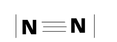 Cząsteczkę azotu przedstawia Wzór I. Azot ma 5 elektronów walencyjnych, tworzy z drugim atomem azotu trzy wiązania dzięki czemu zyskuje oktet elektronowy.