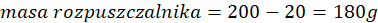 Masa rozpuszczalnika (wody) = 180+200=380 g