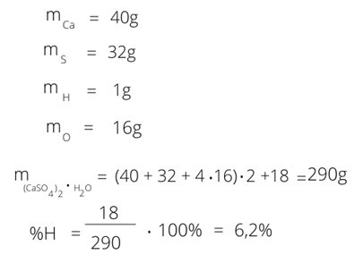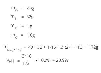 Zawartość procentowa wody w gipsie krystalicznym wynosi 20,9%, a w gipsie palonym 6,2%.