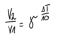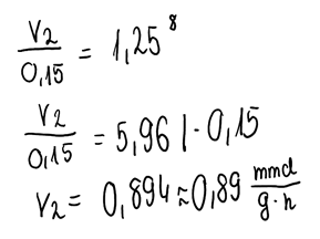 gdzie V2 to szybkość reakcji po zadanym czasie, V1- szybkość początkowa reakcji, a DT to zmiana temperatury jaka ma miejsce w trakcie doświadczenia.