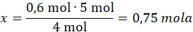 0,6 mola – x