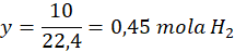 Ilość moli otrzymanego H2 (1 mol to 22,4 dm3 w warunkach normalnych):