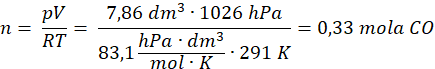 Obliczamy ilość moli otrzymanego CO: