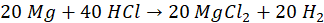 Ułóż podane równanie reakcji. Oblicz potrzebną ilość magnezu do otrzymania takiej ilości wodoru w reakcji z HCl.
