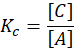 W liczniku znajduje się iloczyn stężeń substratów, a w mianowniku stężeń produktów. Wszystkie stężenia są podniesione do potęgi o wartości współczynnika stechiometrycznego z równania reakcji. Wymiar stałej określamy odejmując wykładniki potęg w mianowniku od tych w liczniku.