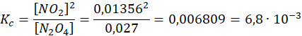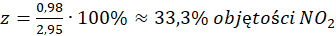 Oblicz procent objętościowy NO2 w mieszaninie równowagowej i stałą równowagi.