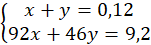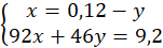 x ∙ 92 + y ∙ 46 = 9,2 g