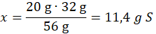 Oblicz, z jaką ilością siarki przereaguje w całości 20 g żelaza.