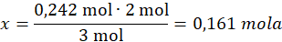Z 3 moli substratów powstają 2 mole produktów, więc: