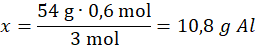 54 g Al – 3 mole wody
