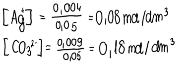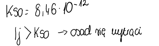 3. Korzystając z informacji obliczonych w punkcie 2., obliczamy stężenie jonów tworzących osad: