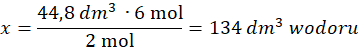 Oblicz objętość wodoru z której powstanie 6 moli wody.