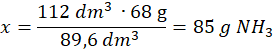 4∙22,4 dm3 NO – 4∙17 g NH3