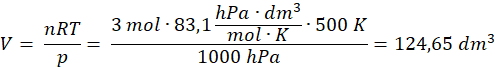 W reakcji powstają 3 mole produktów gazowych. Obliczamy ich łączna objętość: