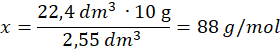 Z wykresu wiadomo, że z 10 g siarczku powstaje 2,55 dm3 H2S.