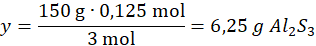 150 g Al2S3 – 3 mole siarki