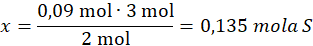 Obliczamy ile siarki przereaguje w tej reakcji z 0,09 mola Al: