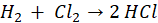 Stosunek molowy równa się stosunkowi objętościowemu: 1 : 1. Czyli 3 dm3 chloru reagują z 3 dm3 wodoru. 1 dm3 wodoru pozostaje nieprzeragowany.