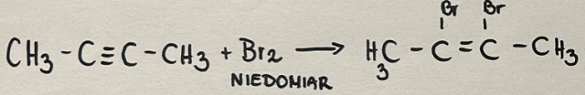 Ze względu na obecność wiązania potrójnego, alkiny mogą ulegać reakcji addycji (przyłączenia), która zachodzi w wyniku rozerwania wiązania wielokrotnego. Przyłączyć mogą się np. cząsteczka wodoru, chloru, chlorowodoru czy wody. Produktami tej reakcji są związki chemiczne należące do alkanów tudzież ich pochodne (alkohole, fluorowocopochodne węglowodorów). W reakcji addycji powstaje wyłącznie jeden produkt!