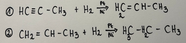 Ze względu na obecność wiązania potrójnego, alkeny alkiny mogą ulegać reakcji addycji (przyłączenia), która zachodzi w wyniku rozerwania wiązania wielokrotnego. Przyłączyć mogą się np. cząsteczka wodoru, chloru, chlorowodoru czy wody. Produktami tej reakcji są związki chemiczne należące do alkanów tudzież ich pochodne (alkohole, fluorowocopochodne węglowodorów). W reakcji addycji powstaje wyłącznie jeden produkt!