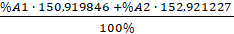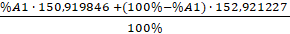 15196 = %A1 ∙ 150,919846 + (100% - %A1) ∙ 152,921227