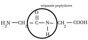 W wyniku kondensacji cząsteczki aminokwasów łączą się ze sobą wiązaniem peptydowym –CONH-, tworząc peptydy.