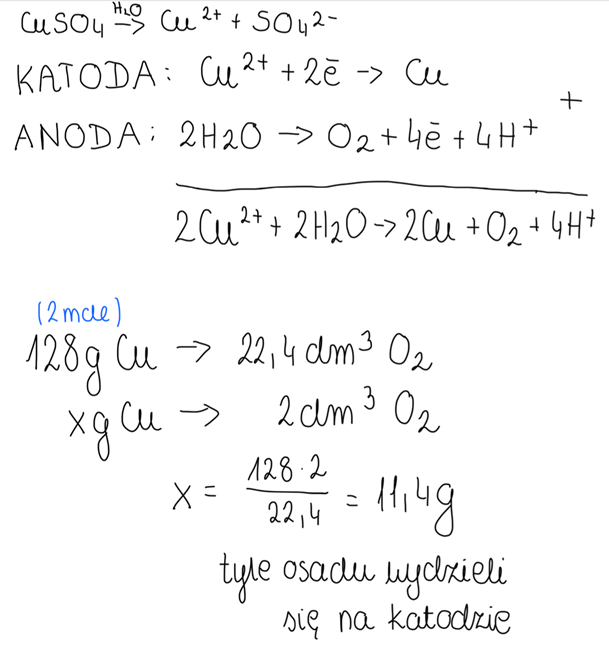 Oblicz o ile gramów wzrosła masa katody podczas elektrolizy wodnego roztworu CuSO4.