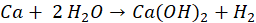 Według równania reakcji 1 mol wapnia reaguje z 2 molami wody, dając 1 mol wodorotlenku.